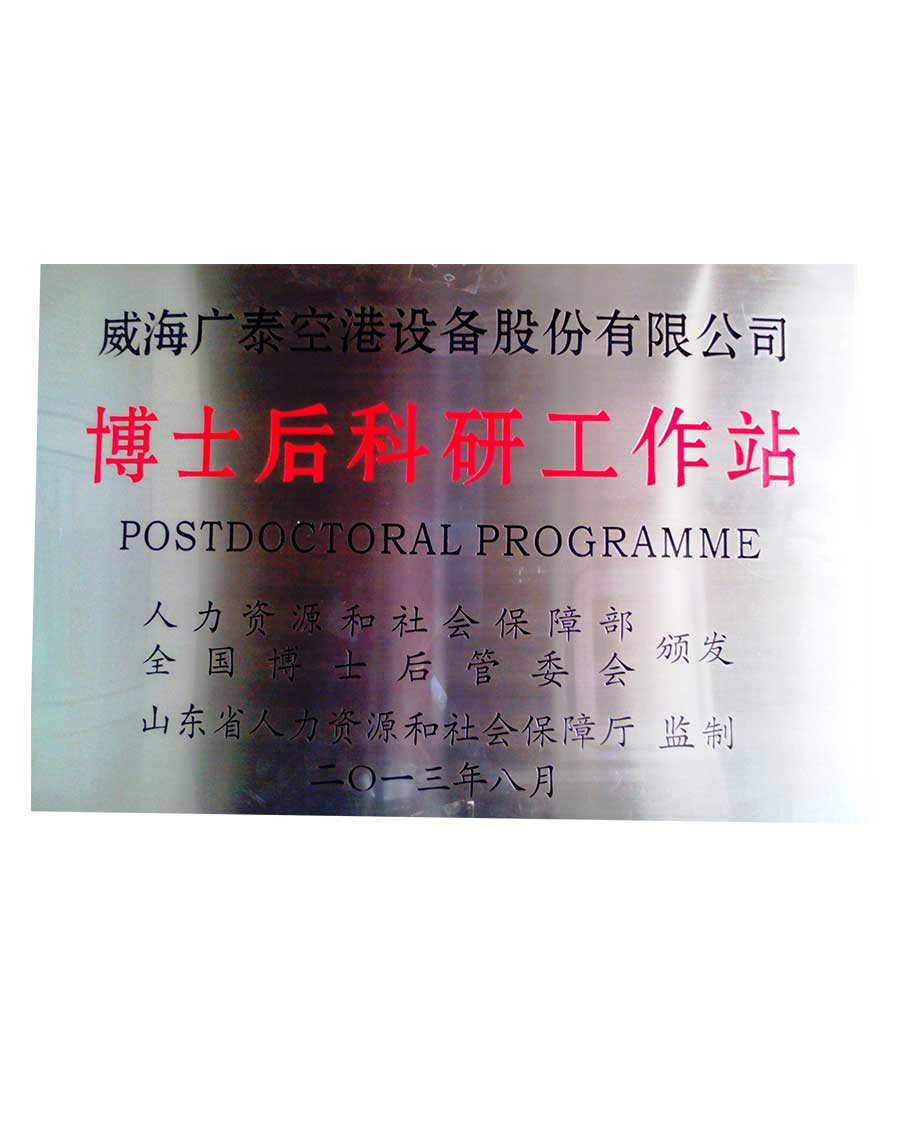 经过三十多年的发展,威海广泰已通过质量、环境、职业健康安全和售后服务等体系认证,其中泰山产业领军人才1人,享受国务院津贴工程师1人,技术研发人员约占公司总人数的12%;拥有行业唯一的国家空港地面设备工程技术研究中心,拥有国家认定企业技术中心和航空地面设备国家地方联合工程实验室,被认定为国家高新技术企业、国家创新型企业、国家技术创新示范企业、对外援助物资项目总承包企业,设有博士后科研工作站,主持或参与制修订并已发布实施国家标准和行业标准10余项。