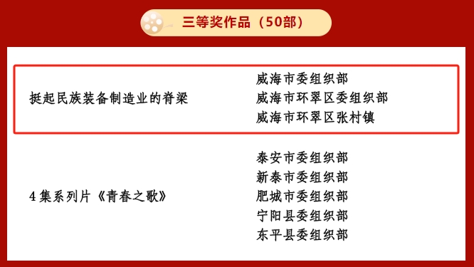 近日,山东省委组织部组织开展了2023年度全省党员教育电视片(党课)观摩交流活动。各地各单位精心组织创作,积极遴选推荐,推出了一大批党员教育精品力作。经过初筛初评、互评互鉴和专家评审,最终确定100部优秀电视片、100部优秀党课、40部“我和我的支部”作品和最佳策划、最佳编…