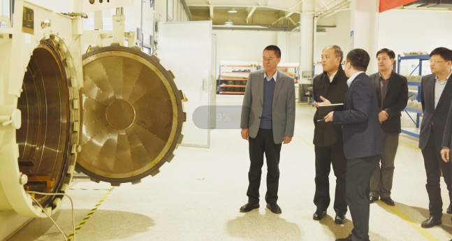 在公司董事长的带领下,服务小组参观了车间,从糊制到装配,将我司生产流程、工艺进行简单讲解,重点介绍我司新工艺——热压罐工艺,此工艺将大大提升生产效率。