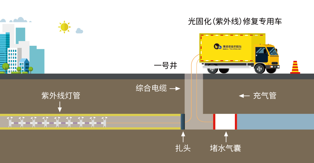 适用于DN800-1600内衬管修复,2×4×2000W,16W配置,功率无级可调,不同管径可精准匹配对应功率,固化安全