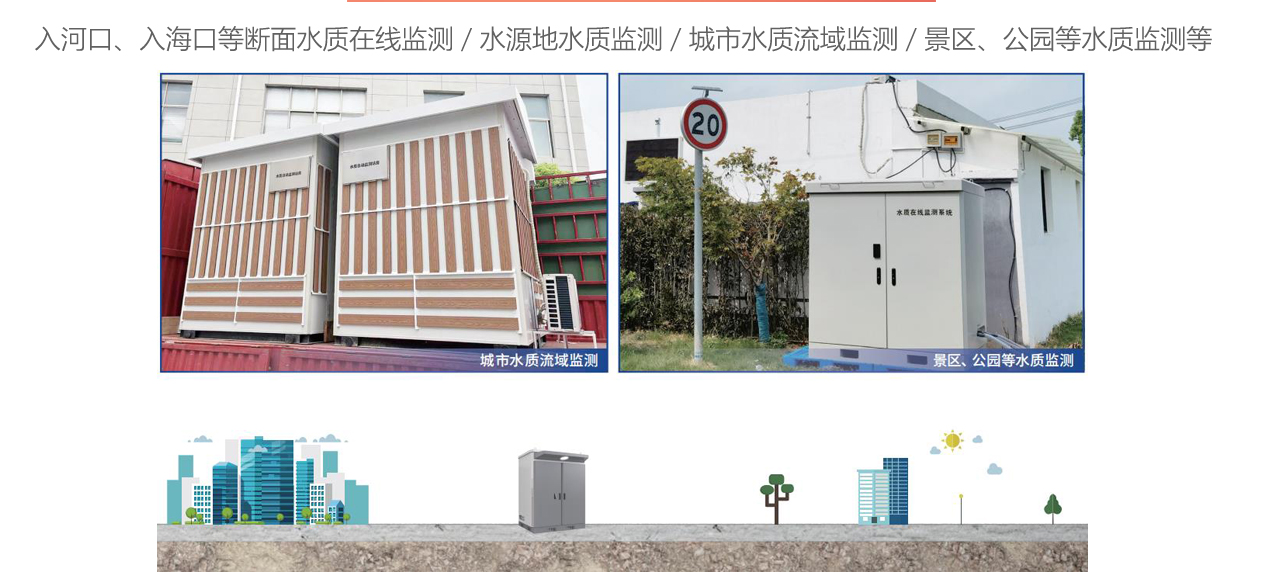 水质监测站是一款一体式集成水质监测系统,与传统的国控地表水监测站相比,占地面积不到 2㎡,运行成 本更低。监测因子除常规九参数外(高锰酸盐、COD、氨氮、总磷、总氮、PH值、溶氧、电导、浊度、温度), 还可拓展叶绿素、蓝绿藻等其他因子。
