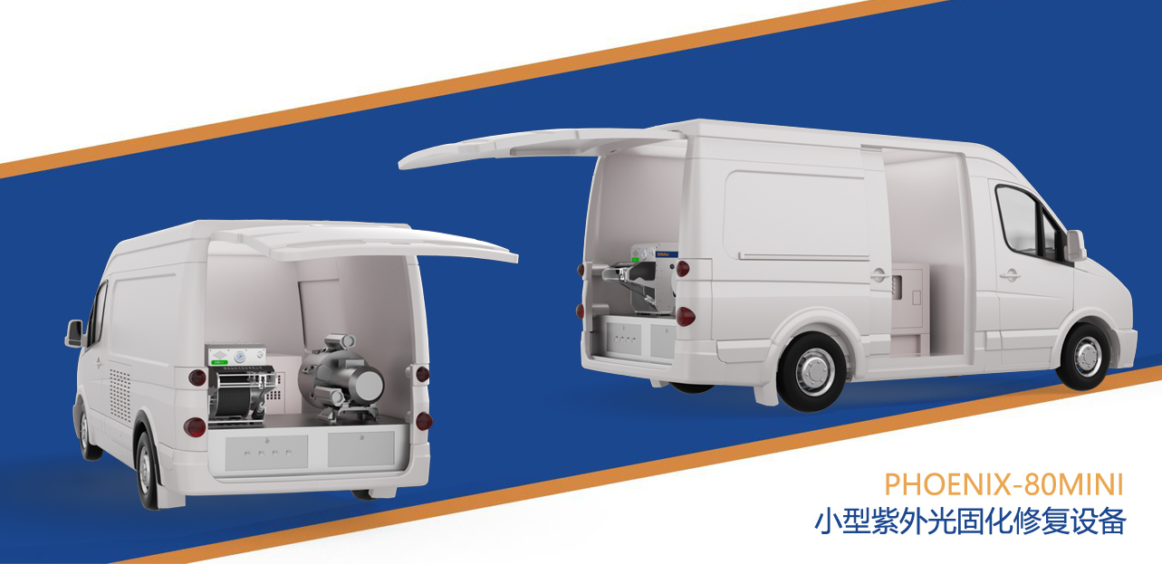 小型紫外光固化修复设备Phoenix-80Mini由移动式主机控制系统、灯链和其它辅助工具组成。主机控制系统采用一体式、小型化设计,方便移动至井口作业,装配车辆选择空间大,既可以装载到工程车上,也可装载在小型货车上,方便进入城镇、小区等大型车辆难以进入的狭窄街道。适用于DN15 0-600管道,单灯链前后双摄像头配置,高强汞灯多档调控,博铭维品质保障,超高性价比。