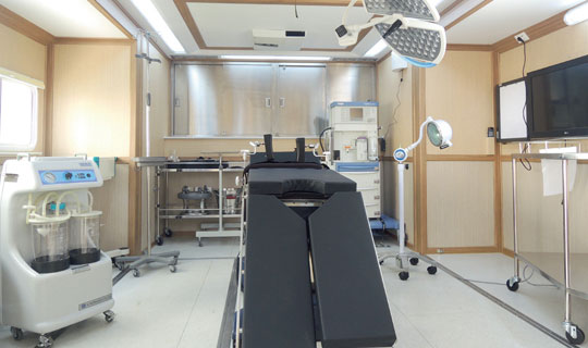 广泰手术车通过层流净化装置达到舱内环境万级净化标准,整车集成供氧、制氧系统,安装手术床、无影灯及其他手术专用仪器设备,在应急情况下实施手术救援。