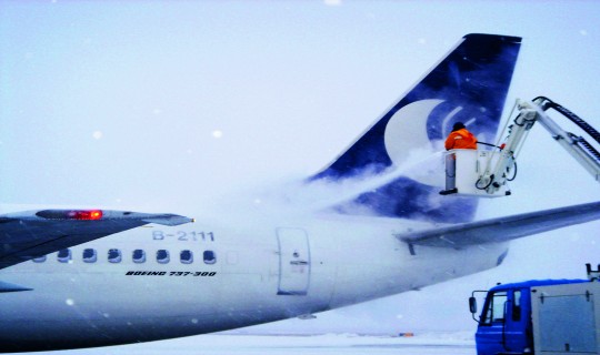 该类设备是将加热到一定温度的除冰液以一定压力喷洒到飞机机身,用于对飞机局部结冰部位或飞机全身进行除冰作业的机场专用设备。同时,还可用于飞机的维修、检查和清洗作业。该设备由汽车底盘、发动机总成、泵室、锅炉、水路系统、伸缩臂、工作舱(斗)、液压系统和电气系统组成。