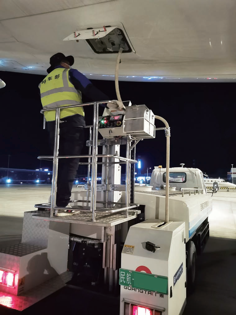 该类设备纯电动驱动,为飞机提供卫生间清洗用水以及接收飞机卫生间污水的机场地面专用设备。