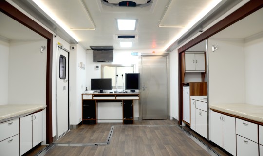 广泰扩展方舱式体检车,秉承精湛的车辆改装工艺,将军品医疗方舱与民品医疗体检完美融合,针对客户个性化设计综合解决方案。